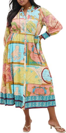 Map out your plans in a fun-to-wear shirtdress cinched with a simple sash and offered with gently billowed sleeves.