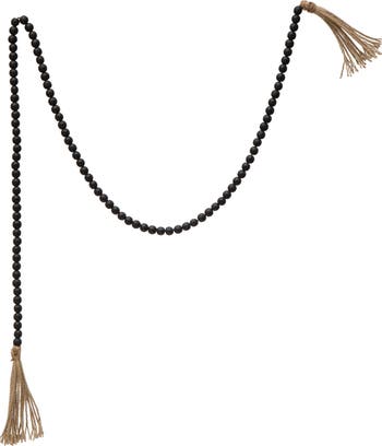 Storied Home Paulownia Wood Bead Garland with Jute Tassels, Main, color, Black