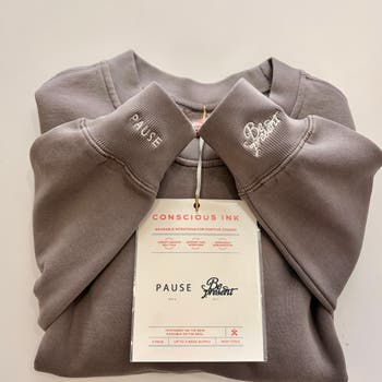 This is no ordinary, lonely sweatshirt. Each comes with a matching Conscious Ink "Pause Be Present" 3-Pack included (a $10/value). It's a unique "2-in-1" empowering Manifestation Kit! This faded grey crew is ready to work for you, reminding you to keep you present throughout your day, no matter what the world throws your way, with its elegantly embroidered cuffs that read "Pause Be Present". Relaxed fit with dropped shoulders, pullover crew, anti-pill fleece, soft and cozy, sleeve cuff ribbing. True to size.