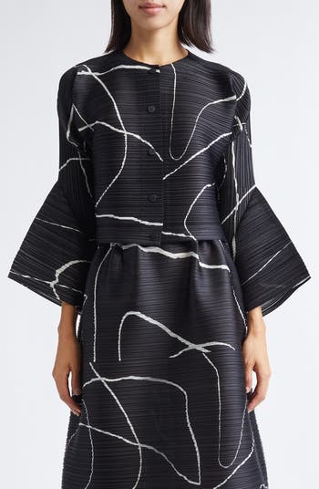 Softly structured with Issey Miyake’s signature garment pleating, this wrinkle-resistant, travel-friendly cardigan blurs the lines between fashion and art with its sculptural shape and abstract print that feels alive with movement.