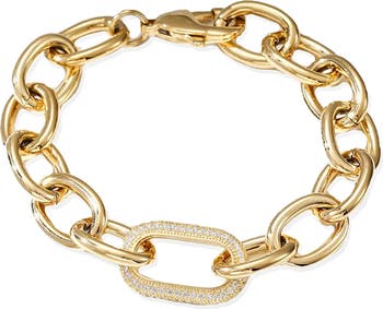 A pavé crystal covered link creates an icy center on this chunky oval chain bracelet ready to put a spark in your stack.