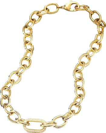 A pavé crystal covered link creates an icy center on this chunky oval chain necklace ready to put a spark in your stack.