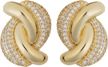Pavé crystals trace twisted curves on these 14-karat-gold-plated drop earrings that sparkle from every angle.