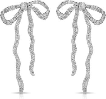 Pavé Cubic Zirconia Bow Drop Earrings