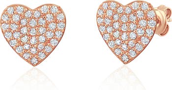 Bring an element of dazzling romance to your look with these hand-set pavé cubic zirconia heart stud earrings.