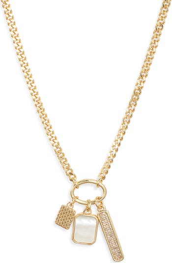 Chelsea28 Pavé Cubic Zirconia & Mother-of-Pearl Charm Necklace, Alternate, color, White- Clear- Gold