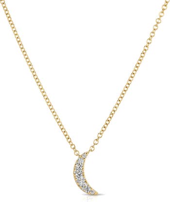 Pavé diamonds enhance the celestial sparkle of this delicate crescent moon choker necklace cast in 14-karat gold.