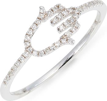 Protection and peace are represented by the hamsa at the focal point of this 14-karat gold ring alight with pavé diamonds.