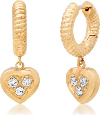 Pavé Diamond Heart Huggie Hoop Earrings