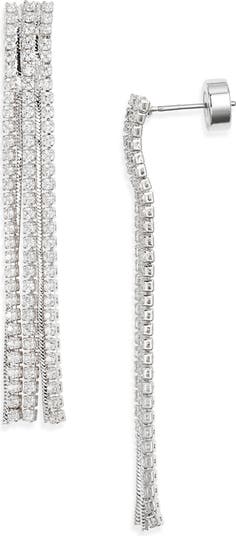 A trio of cubic zirconia-laden chains will sparkle and shine with every move you make in elegant drop earrings layered in fine metal.