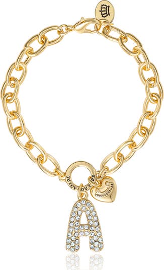 Your letter, your shine. A chunky gold‑tone chain holds a crystal‑studded Letter charm and signature heart tag. Designed with a lobster clasp and extender for an adjustable, comfortable fit. Stack it with other Juicy pieces for a custom arm party.