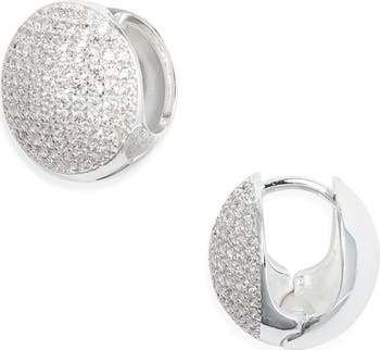 Pavé crystals shimmer and shine on these standout huggie earrings that complete your look with elegance to spare.
