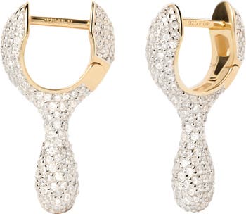 Sleek huggie earrings set with pavé zirconia drop pendant