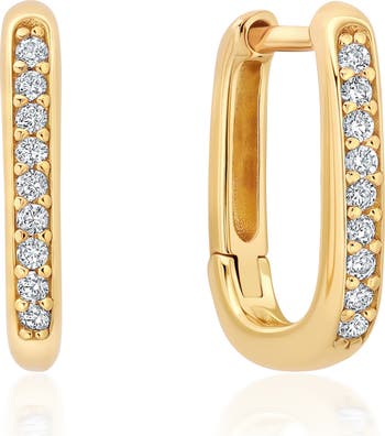 Bring sophisticated sparkle to your day and evening looks with these polished hoop earrings styled in a modern square silhouette adorned with shimmering pavé stones.