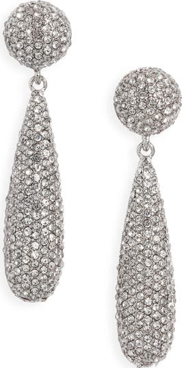 Dial up the drama of your special-occasion style with these fluid teardrop earrings covered in sparkling pavé crystals.