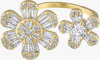 This flower ring is a sparkling treasure designed to delight flower lovers and style enthusiasts alike. This adjustable ring, adorned with radiant floral motifs, is the epitome of elegance and versatility, perfect for any outfit or occasion. Style it alone for a subtle statement or pair it with the matching flower earrings to complete a beautifully coordinated look.