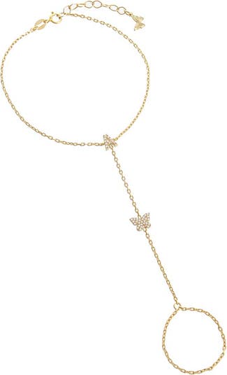 Transform any ensemble into a work of art with Adina Eden's Pave Butterfly Initial Hand Chain, featuring a delicate hand chain accented with a petite CZ butterfly charm and an initial charm. Customize this gem with the letter of your choice. Stack it with a few chain essentials and a cute matching necklace for a stunning look that's all about you.