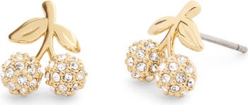 Shine sweetly in these delicatible cherry stud earrings encrusted with pavé crystals.