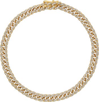 Put a brilliant finish on your look with a classic curb-chain bracelet handcrafted from polished 18-karat yellow gold and glittering with pavé diamonds.