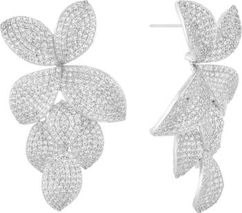 BY ADINA EDEN Pave Fancy Flower Petals Drop Stud Earring, Main, color, Silver