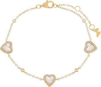 Introducing the Adina Eden Pave Multi Heart Stone Bracelet, a timeless piece that captures the essence of elegance and romance. Crafted from high-quality brass and plated with 14K gold, this bracelet features a series of delicate heart-shaped charms adorned with shimmering clear CZ stones. Each charm showcases a different colored stone, available in the luxurious hues of Mother of Pearl (MOP), Malachite, Onyx, and Turquoise, allowing you to choose the one that resonates with your style. With a versatile length of 6 inches plus two 0.5-inch extenders, this bracelet offers a perfect fit for any wrist. Whether you wear it alone for a subtle statement or layer it with other pieces for a bolder look, the Pave Multi Heart Stone Bracelet adds a touch of sparkle and sophistication to any outfit. Ideal for both everyday wear and special occasions, this bracelet is a must-have addition to your jewelry collection.