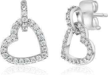 Pave Open Heart Drop Earrings
