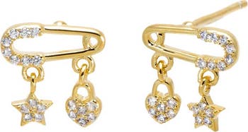 Let your jewelry do the talking with the Pave Safety Pin Charm Stud Earring by Adina Eden, a confident Earrings set. This trendy earrings set turns heads with its silhouette and sparkle, available in Gold. When you want your outfit to feel complete, no matter the outfit, this piece offers that low-effort, high-reward finish we all love. Pair this gold plated earrings set with pieces from our Hoops & Huggies collection to make your everyday styling effortless. It was made to match your real-life style, day in and day out.
