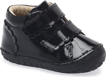 Sweet scalloped edging brings a playful touch to this lightweight sneaker made from soft leather for comfort that lasts. Double hook-and-loop straps make dressing easy, while the flexible sole and cushioned footbed keep little feet supported.