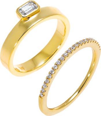 BY ADINA EDEN Pave X Baguette Bezel Double Ring, Main, color, Gold