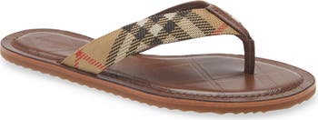 Step up your poolside style with this Italian‑made flip‑flop featuring Burberry’s instantly recognizable checks across the jacquard‑woven strap and debossed leather footbed. A ridged sole grounds the look with practical traction.