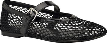 Signature logo hardware and glossy faux-leather trims highlight the breathable mesh upper of a ballet flat fastened by an adjustable mary jane strap for a secure fit.