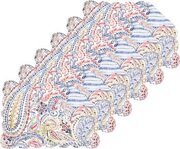 For a vibrant and stylish addition to any space, Payton Paisley table linens burst with a lively array of colors, including the matching reversible napkin. The captivating watercolor paisley design in blue, red, green, yellow, and white exudes energy and personality for a one-of-a-kind piece of art. Reverse to a charming watercolor stripe pattern created with a variety of playful dots and dashes in agreeable shades of blue for more styling options. Love this look? Payton Paisley is also available as a bedding collection.