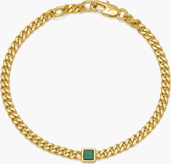 This elegant bracelet showcases a stunning rectangular malachite stone, delicately positioned in the center of a refined curb chain. The rich green hue of the malachite adds a touch of natural beauty, making it a sophisticated accent piece. Designed with versatility in mind, this bracelet is perfect for both men and women, offering a timeless style that can effortlessly complement any outfit. Whether worn alone or layered, it adds a unique touch of elegance and charm to your jewellery collection.