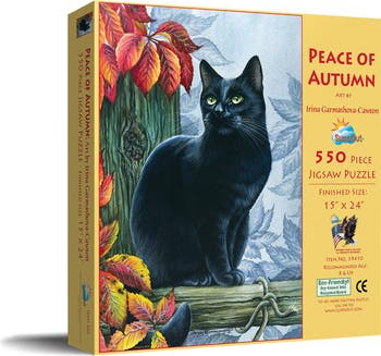 Dive into the serene tranquility of the fall season with SunsOut's "Peace of Autumn" 550 piece jigsaw puzzle. Showcasing the vibrant artwork by the renowned artist Irina Garmashova-Cawton, this captivating adult puzzle encapsulates the essence of autumn's natural beauty. Crafted in the USA from high-quality recycled cardboard and printed with eco-friendly soy-based inks, SunsOut puzzles combine pleasure and relaxation with sustainable practices. Each precision-cut piece fits seamlessly, embodying the exceptional quality and interlocking design that reduces frustration for a smooth and enjoyable puzzle-solving experience. SunsOut's commitment to its customers is evident in their worry-free guarantee, offering assistance for any issues with missing or damaged pieces, ensuring your satisfaction. Moreover, by choosing SunsOut, you are supporting a proudly woman-owned small business. Each purchase, including this enchanting "Peace of Autumn" puzzle with its elegant animal-themed imagery, contributes to the growth of a passionate company. Start your puzzle-solving journey today with SunsOut's "Peace of Autumn" jigsaw puzzle and discover the peace and beauty that comes with every piece you connect.
