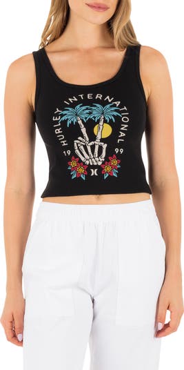 A gnarly logo graphic looks rad under sunny skies in this abbreviated cotton-rib tank.