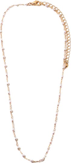 Small pearls separated by gold delicate chain. Perfect if you love to layer dainty necklaces together or wear this one solo! Hits right by the collarbone or longer if you’d like by using the extender.