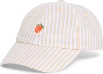 Everything is just peachy keen in this striped cotton-canvas hat decorated with fun, fruity embroidery.