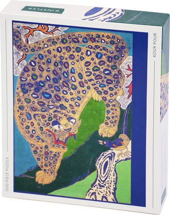 KINSTLER - PEACOCK TIGER, 26.5" X 19.25" 1000 PIECE PUZZLE - Peacock Tiger is one of a series of remarkable medium and large scale painting/block prints that Kour Pour has created in recent years. This one is our personal favorite and, as it so happens, the artist's favorite as well.Recently granted US citizenship, Pour's experience as an immigrant with a mixed-raced background is the foundation of his work. Weaving together representational imagery, abstract patterning, and ornamental elements, he creates new hybrid artworks that trace cultural exchange around the globe. PRODUCT INFORMATION: - 1,000 piece puzzle - Four page color insert included in box - Completed puzzle size: 26.5x19.25 in (67.30x48.90 cm) - Box size: 10x8x2in (25x20x5cm) - Designed in Brooklyn, NY | Printed, assembled, and packed in the USA. - Made with 100% recyclable materials. ABOUT THE ARTIST: Through painting, printmaking, and sculpture, Kour Pour’s works encompass diverse subject matter and culturally specific references, ranging from Persian carpets, Japanese ukiyo-e prints, Mexican tile patterns, and Korean Minhwa folk art. Pour attended Otis College of Art and Design, Los Angeles, CA. Recent solo exhibitions include Wild Garden at SHRINE and Sargent’s Daughter galleries in NYC, 2021, and Familiar Spirits at Kavi Gupta, Chicago, 2021
