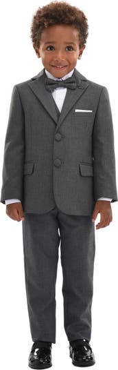 The Peak Lapel Tuxedo is the perfect blend of timeless elegance and modern style. This ensemble includes a peak lapel blazer, dress shirt, vest, trousers, and a bow tie. An impeccably crafted outfit for any special occasion.
