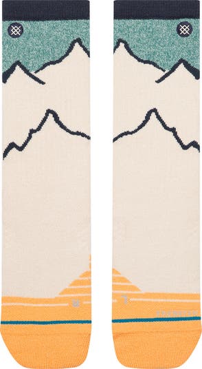 Enhanced by temperature-regulating merino wool, these hiking-themed crew socks feature jacquard mountaintops that are reminiscent of breathtaking heights.