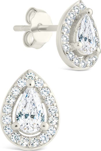 Pear Cut Cubic Zirconia Halo Stud Earrings
