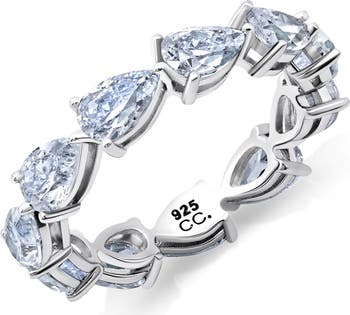 This eternity ring hand set with horizontal pear-cut cubic zirconia wraps your finger in brilliant shine