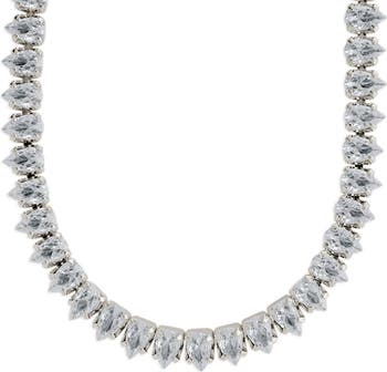 Pear-cut cubic zirconia bring unmistakable sparkle and glamour to an elegant tennis necklace.