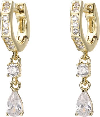 Pear CZ Drop Huggie Earring