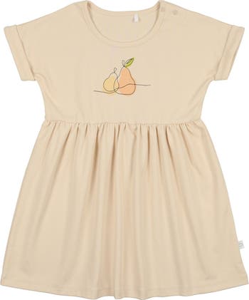 Step into style with the Pear Graphic Sleeve Dress. Featuring a playful pear graphic and a flattering cut for all body types, this dress is perfect for anyone looking for a classy yet fun look. And with its easy wearability, it's the perfect choice for running, playing, and everything in between.