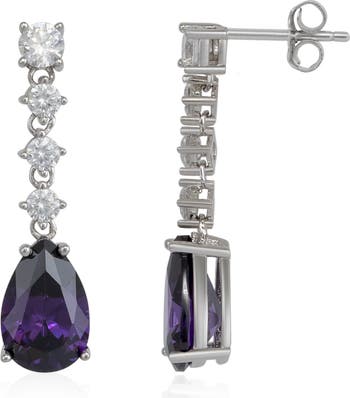 Pear Shape Amethyst Sterling Silver Drop Earrings