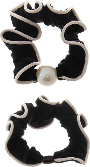BY ADINA EDEN Pearl Accent Ruffle Scrunchie Duo, Main, color, Black
