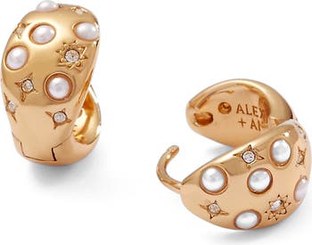 Add a luminous touch to any look with these Pearl and Crystal Huggie Hoop Earrings. These post earrings feature pearl and clear crystals, set on huggie hoops with an etched starburst pattern. Wear them for an unmatched glow.
