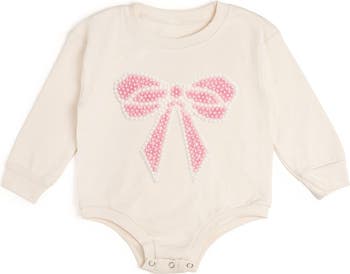 The Pearl Bow Patch Long Sleeve Romper is a cute and trendy romper for babies inspired by the latest bow trend!