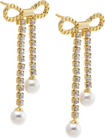 Add high-shine polish to your stack with the Pearl Bow Tennis Drop CZ Stud Earring by Adina Eden, a chic Earrings set you'll wear nonstop. Crafted to shine with personality, this stud earrings set comes in White. No matter the plan or pace, this piece lets you feel confident and complete—like the final touch your look didn't know it needed. Pair this gold plated stud earrings set with styles from our Ear Cuffs & Drops collection for a finished outfit that feels totally you. It completes your outfit without competing with it.